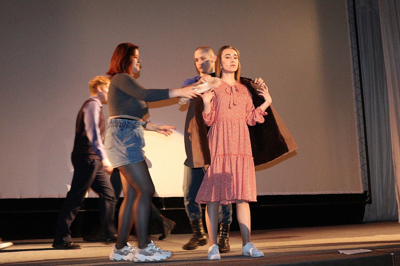 В спектакле участвуют курсанты Академии МЧС, волонтеры Молодежного центра, и актриса театра оперетты.