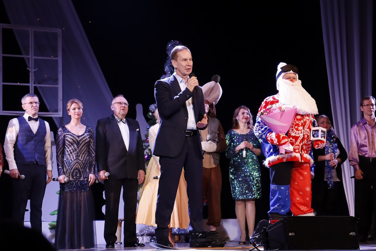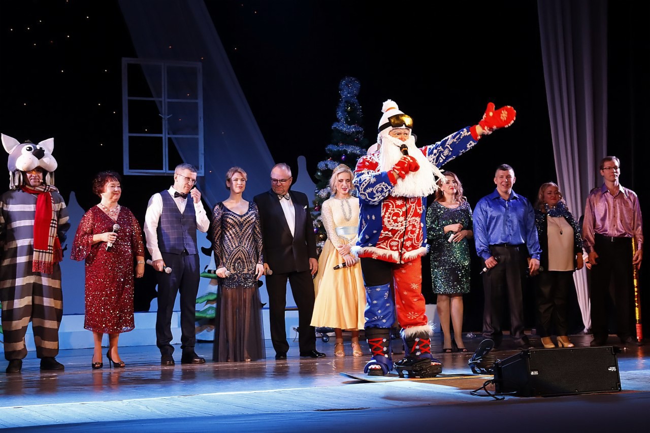 Работники Горно-химического комбината и творческие коллективы города исполнили песни разных лет с новогодними мотивами.