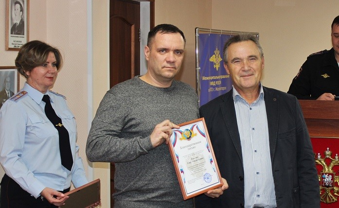 Врио начальника МУ МВД России по ЗАТО г.Железногорск и председатель общественного совета при МУ МВД вручили благодарности самым активным гражданам.