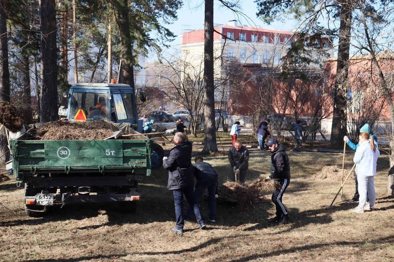 В Железногорске сотрудники Горно-химического комбината вышли на субботник. Они привели в порядок аллею за главным зданием предприятия и улицу Северную.
