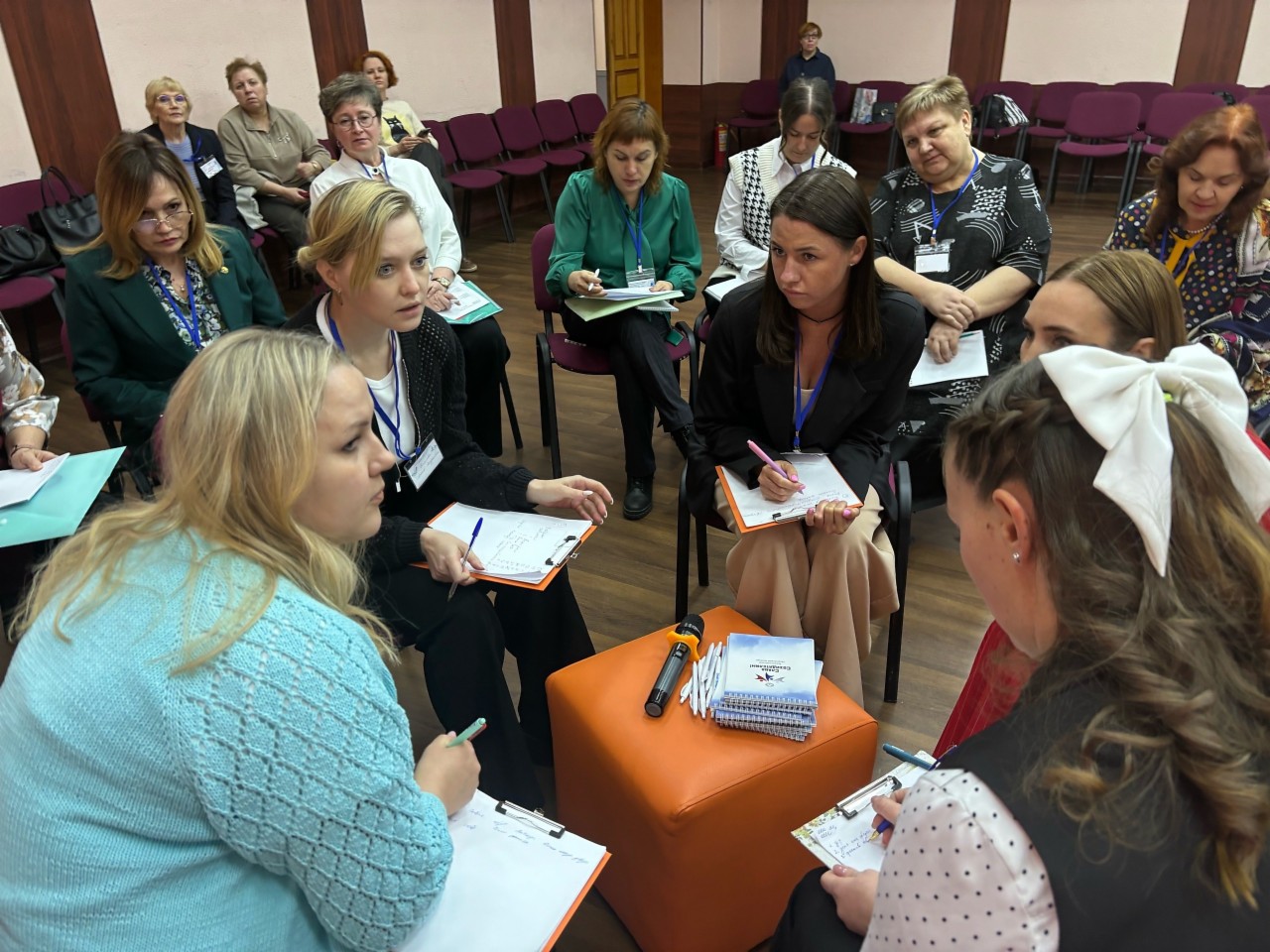 Испытание «Блицтурнир» интересно тем, что педагоги - воспитатели и учителя - объединялись в группы в случайном порядке. В каждой группе присутствовали и воспитатели, и учителя. В ограниченный временной отрезок педагогам нужно было решить 10 педагогических кейсов и озвучить свои ответы членам жюри сразу двух конкурсов «Учитель года» и «Воспитатель года».