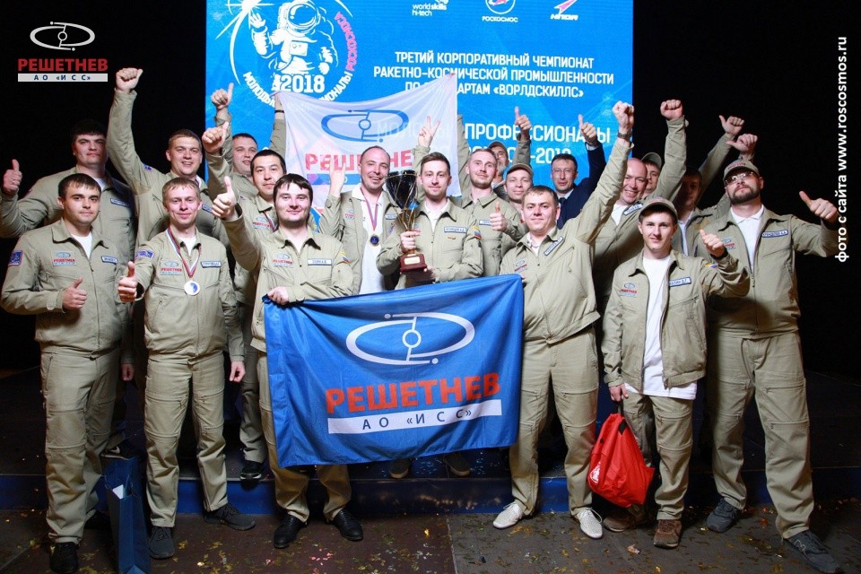 Кубок отраслевых соревнований профессионального мастерства команда АО «ИСС» завоевала, опередив по очкам соперников из 25 предприятий ракетно-космической промышленности России.Существенный вклад в победу решетневцев внесли: Владимир Болгов – первое место в компетенции «Прототипирование»; Максим Коновалов – второе место в компетенции «Сварочные технологии»; Дмитрий Киндяков и Андрей Струговец, занявшие третьи места в компетенциях «Инженерная графика CAD» и «Электроника» соответственно.
