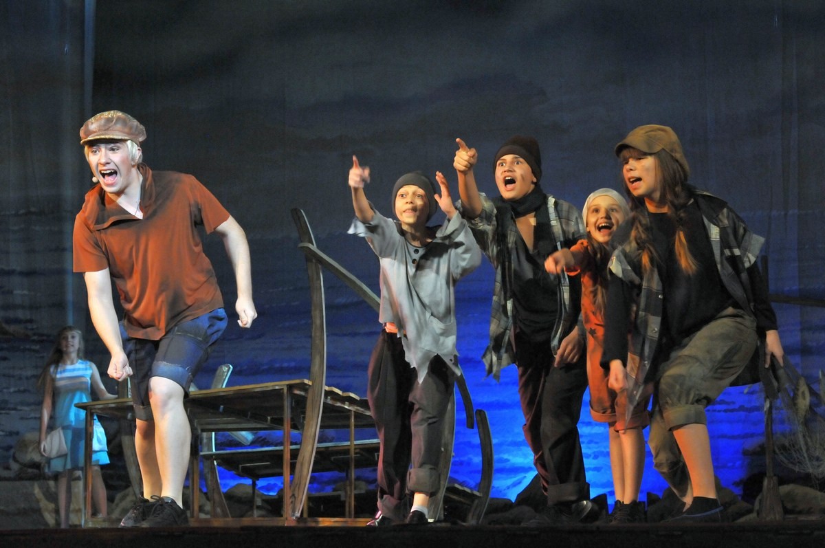 В мюзикле «Алые паруса» много массовых сцен, и постановщикам нужно было определиться с большим количеством исполнителей, занятых в них. Объявили кастинг среди молодежи, и в этом большом театральном проекте появились курсанты Сибирской пожарной спасательной академии, юные участники образцового ТЮЗа «Современник». Именно они сыграли главных героев в детстве.