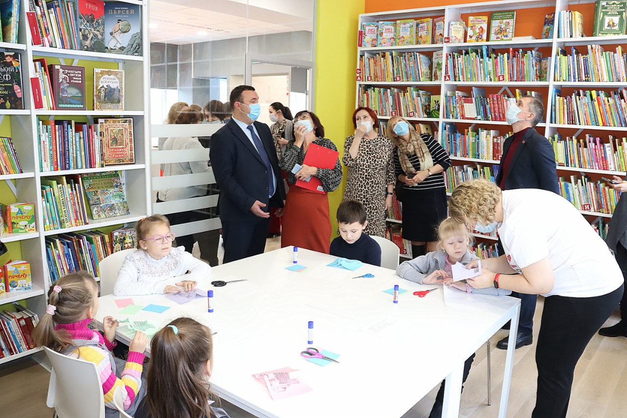 На открытии нового пространства для первых посетителей директор провела экскурсию. Среди гостей были чиновники, депутаты и, конечно, главные герои - дети посёлка.