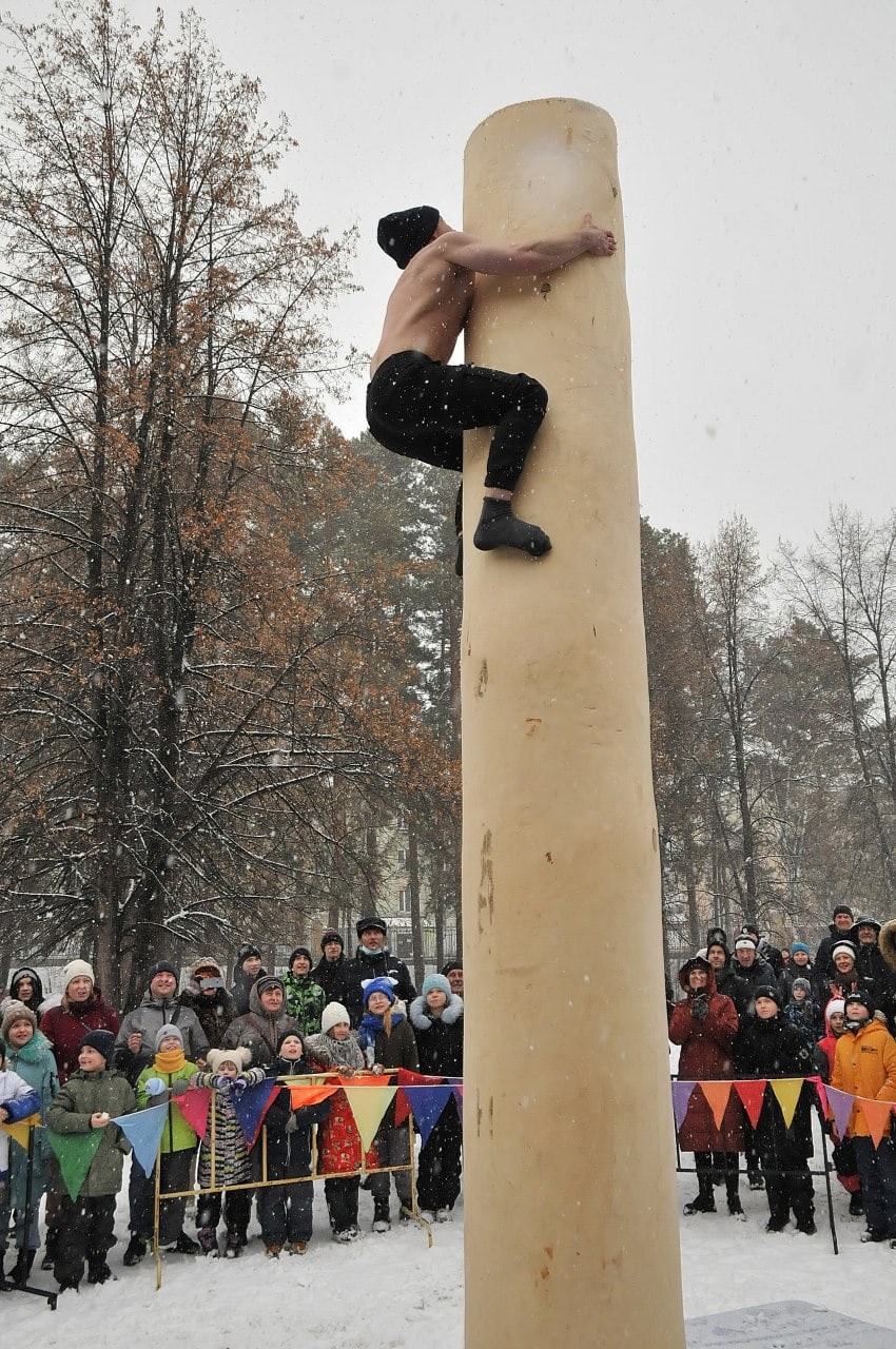 Главное масленичное действо развернулось возле катка «Умка». Здесь впервые прошел конкурс блинопеков и впервые в истории города здесь испекли самый большой масленичный блин диаметром два метра.