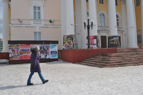 Например, баннер «Мастера и Маргариты» до сих пор одиноко смотрит на двери гостиницы «Центральная». Видимо, все местные театралы, сосредоточены именно там.