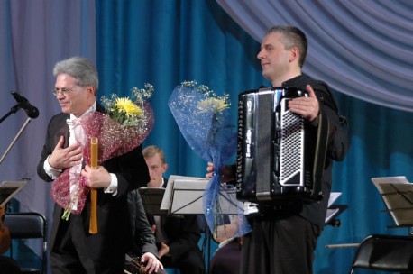 Для железногорцев музыканты привезли большую программу в двух отделениях. В первом прозвучала музыка Сергея Прокофьева. Его сюиту для скрипки и фортепьяно исполнили молодая скрипачка Римма Бенюмова и пианистка, заслуженная артистка России Лариса Маркосьян. Римма еще школьницей приезжала с концертами в Железногорск, местные любители классики хорошо ее помнят. Алла Круглова, руководитель скрипичного отделения ДШИ, в интервью нашей газете подчеркнула, что совсем юная скрипачка, выступая с большими оркестрами, уверенно вела за собой взрослых музыкантов. Теперь Римма учится в Берлинском музыкальном университете. Отец, Михаил Иосифович, доволен успехами дочери. Она нет-нет да и просит его преподать очередной урок по скайпу. Но Бенюмов-старший, как он сам рассказал после концерта, не склонен особо критиковать дочь, поскольку она уже достигла значительных высот в исполнительском мастерстве и в особых корректировках не нуждается.