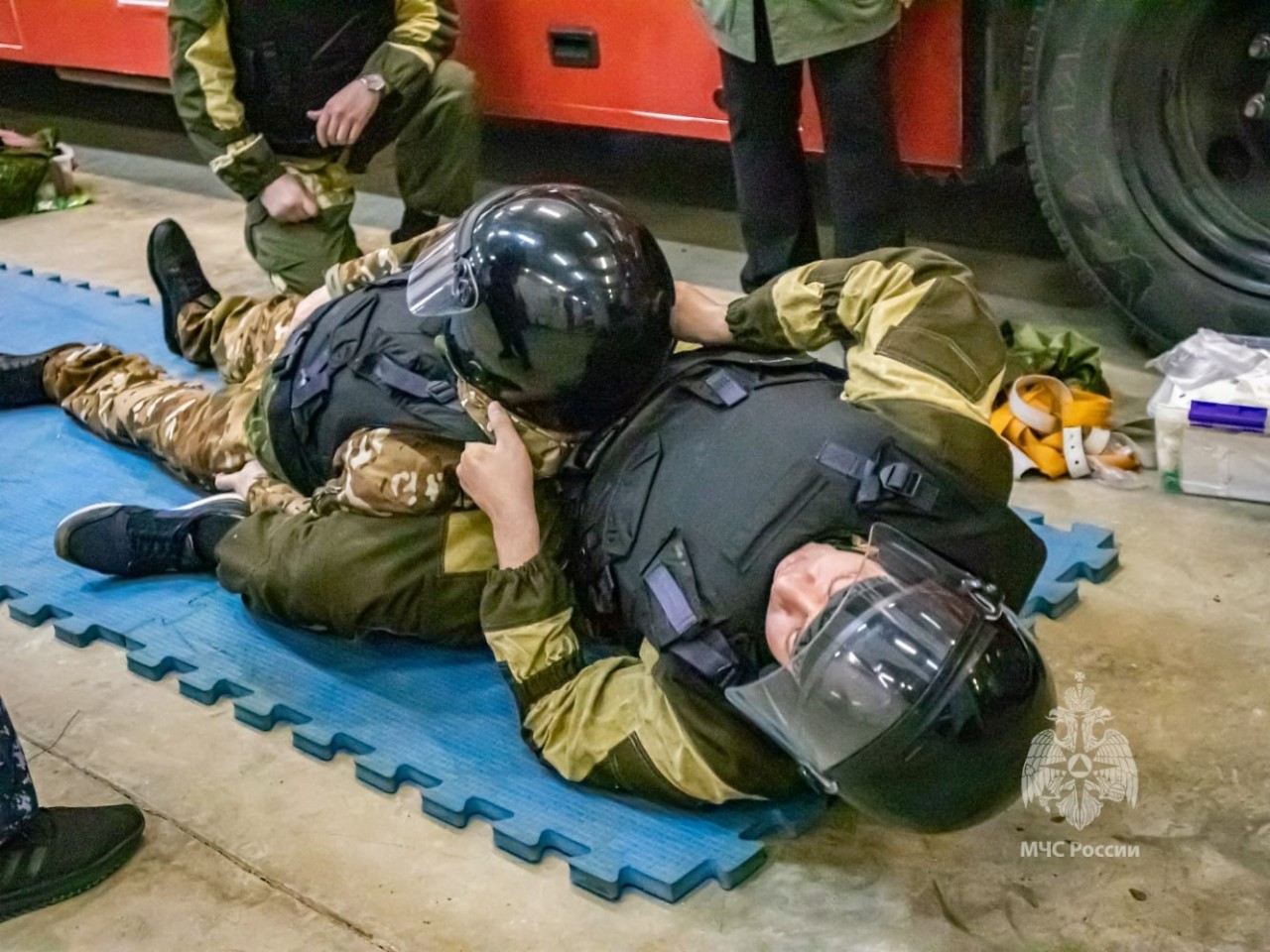 Специалисты Сибирской пожарно-спасательной академии ГПС МЧС России провели для личного состава Главного управления МВД России по Красноярскому интенсивные практические занятия по дисциплине «Тактическая медицина» с целью подготовки к несению боевой службы в условиях проведения специальной военной операции.