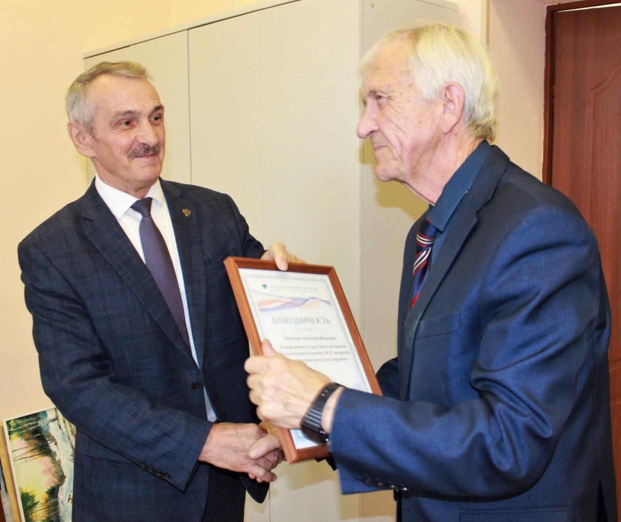 Приятным сюрпризом стали четыре картины врача-хирурга КБ № 51 Анатолия Архипова. Вдохновленный красотой природы, он подарил Совету полотна, посвященные временам года. В ответ Александр Ломакин вручил автору благодарность и пожелал дальнейших творческих успехов.