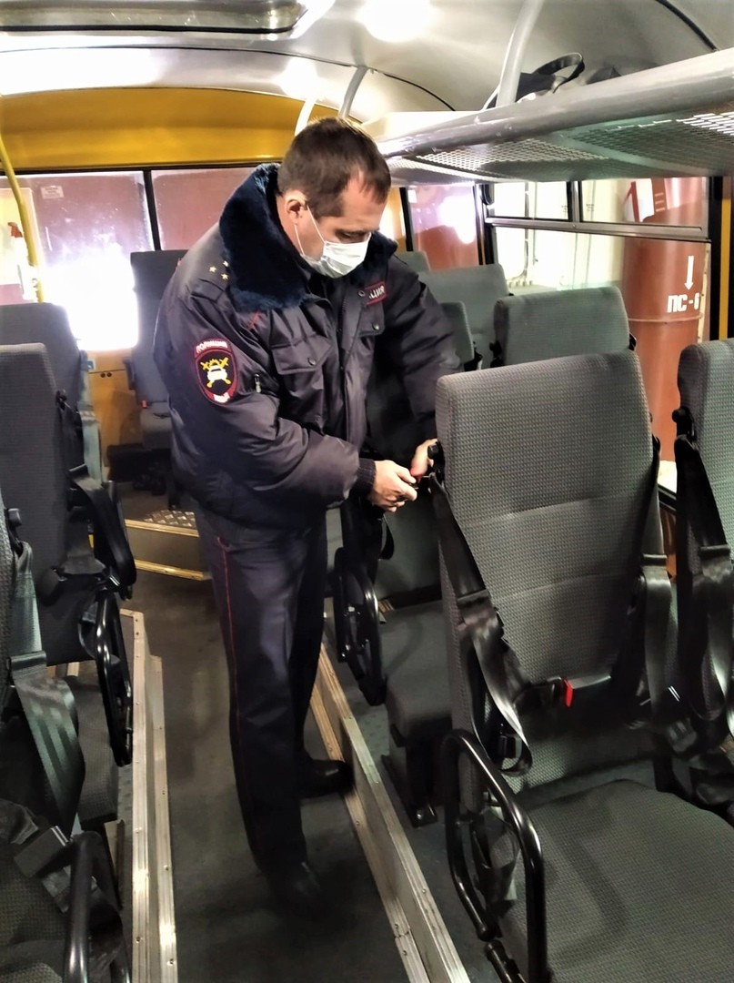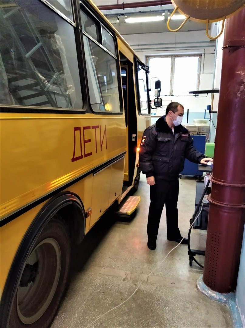 В ходе осмотра транспорта совместно с операторами пункта ТО сотрудники ГИБДД обращают внимание на исправность тахографов, тормозной системы, ремней на всех пассажирский сидениях и другие параметры безопасности. Напомним, новый специализированный транспорт оснащён всем необходимым: системой ГЛОНАСС, тахографами, устройством ограничения скорости не более 60 км/ч и устройством, препятствующим началу движения при открытых дверях, удобными сиденьями с ремнями безопасности и кнопками «Просьба об остановке», опознавательными знаками «Дети», полками для ручной клади.