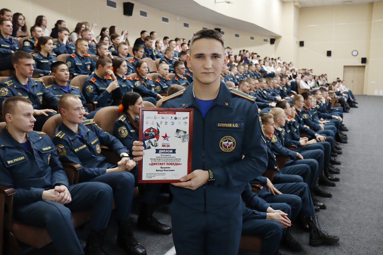 Региональным победителем Международного исторического диктанта на тему событий Второй мировой войны «Диктант Победы» стал курсант первого курса Академии МЧС Артур Булуков с максимально возможным результатом — 100 баллов.