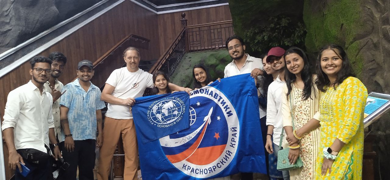 Флаг Железногорской Школы космонавтики продолжает своё путешествие по Индии вместе с РГО.