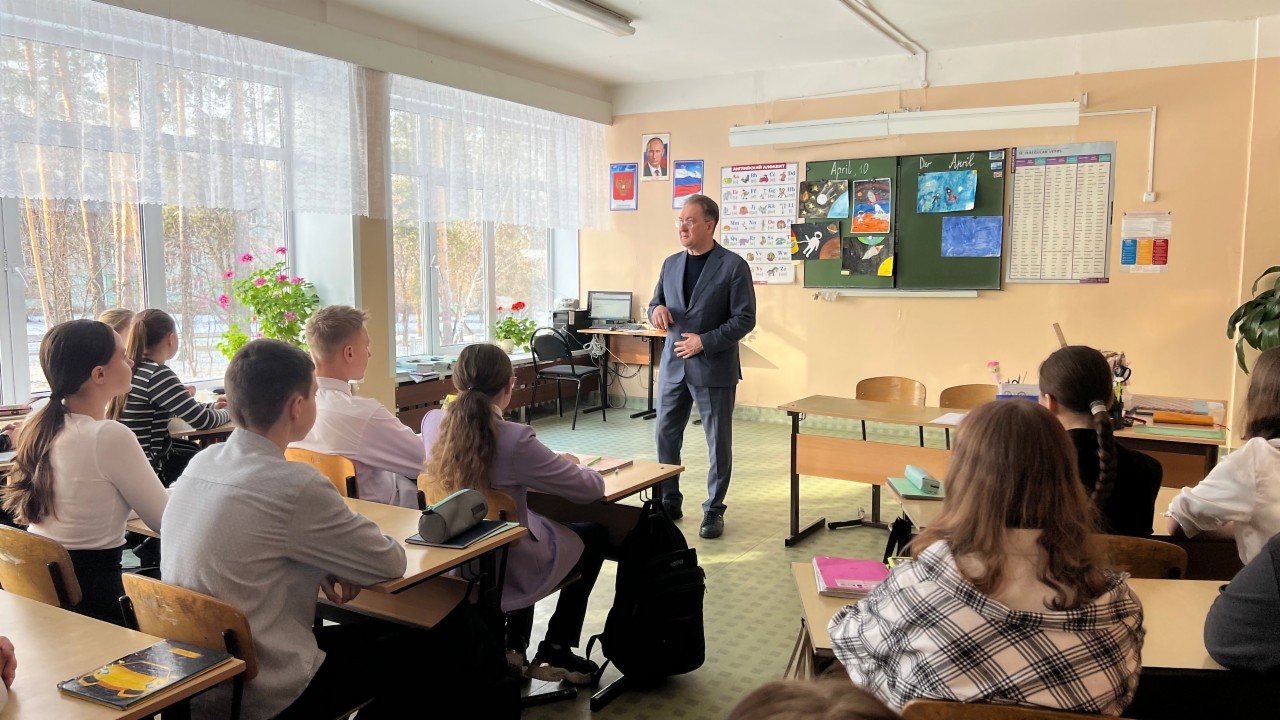 Председатель Совета депутатов Сергей Проскурнин поговорил о важном с учащимися 7-го класса школы № 97. На этой неделе патриотические уроки были посвящены Дню космонавтики.