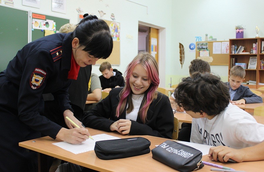 Тема для встречи была выбрана неслучайно, совсем скорогимназисты получат свой первый паспорт, в котором на ближайшие шесть лет оставят личную подпись. Майор полиции Евгения Кравцова рассказала ребятам о том, какое значение имеет уникальное графическое сочетание, присущее конкретному человеку. Старший эксперт-криминалист подчеркнула, что подпись «живет» с нами всю жизнь –практически все официальные документы удостоверяются именно таким способом. Сотрудница полиции с помощью слайдов познакомила участников занятия с историей развития подписи в России: начиная с «крестиков» и заканчивая аббревиатурами и сложными рисунками. Евгения Владимировна объяснила, из каких элементов можно ее сформировать и предложила гимназистам реализовать полученные знания на практике.Учащиеся придумывали различные варианты подписи и пробовали закрепить навык, стараясь точно повторить самый удачный. Отвечая на вопросы подростков, эксперт отметила, что решение изменить подпись желательно совмещать по срокам с заменой паспорта. В противном случае, несоответствие «паспортного» автографа подписи, оставленной в других документах, может привести к сомнениям в действительности последнего. Педагог и ее воспитанники тепло поблагодарили специалиста в погонах за интересное занятие и дали обещание ответственно подойти к выбору и формированию личной подписи.