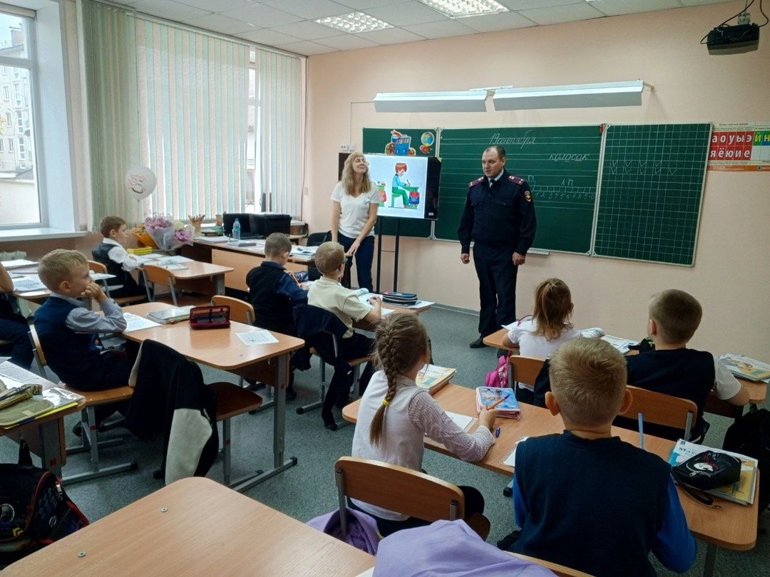 Руководитель ведомства напомнил учащимся об основах безопасного поведения на проезжей части в осенний период времени. В ходе короткого опроса Сергей Викторович выяснил, насколько хорошо дети знают правила движения для пешехода, повторил с детьми особенности движения пешком в условиях гололедицы, а также разъяснил важность использования световозвращающих элементов. Убедившись, что дети знают меры личной безопасности при пеших прогулках, С.В. Кулешов ответил школьникам на интересующие их вопросы, а также разобрал различные дорожные ситуации, про которые рассказали школьники.