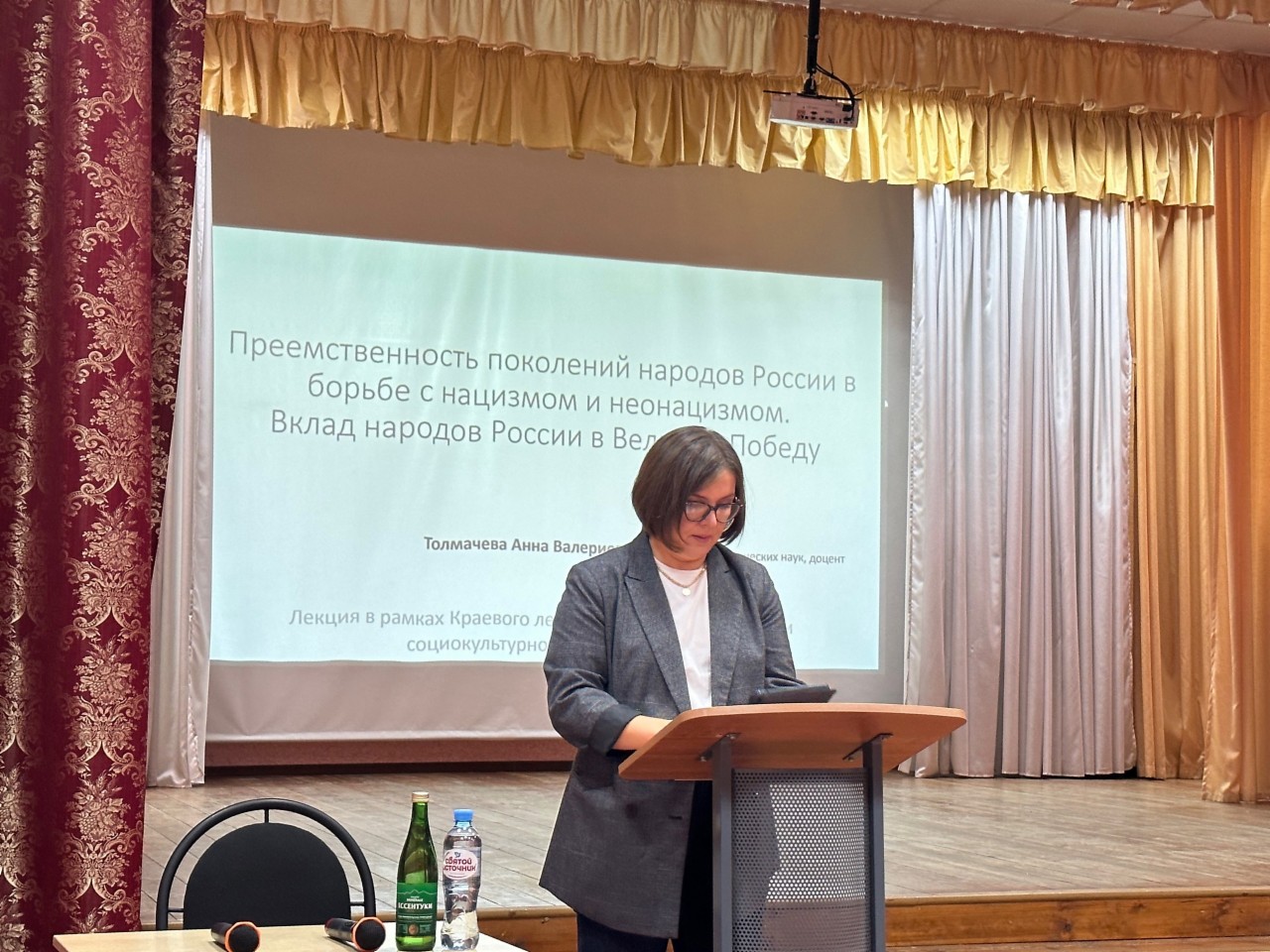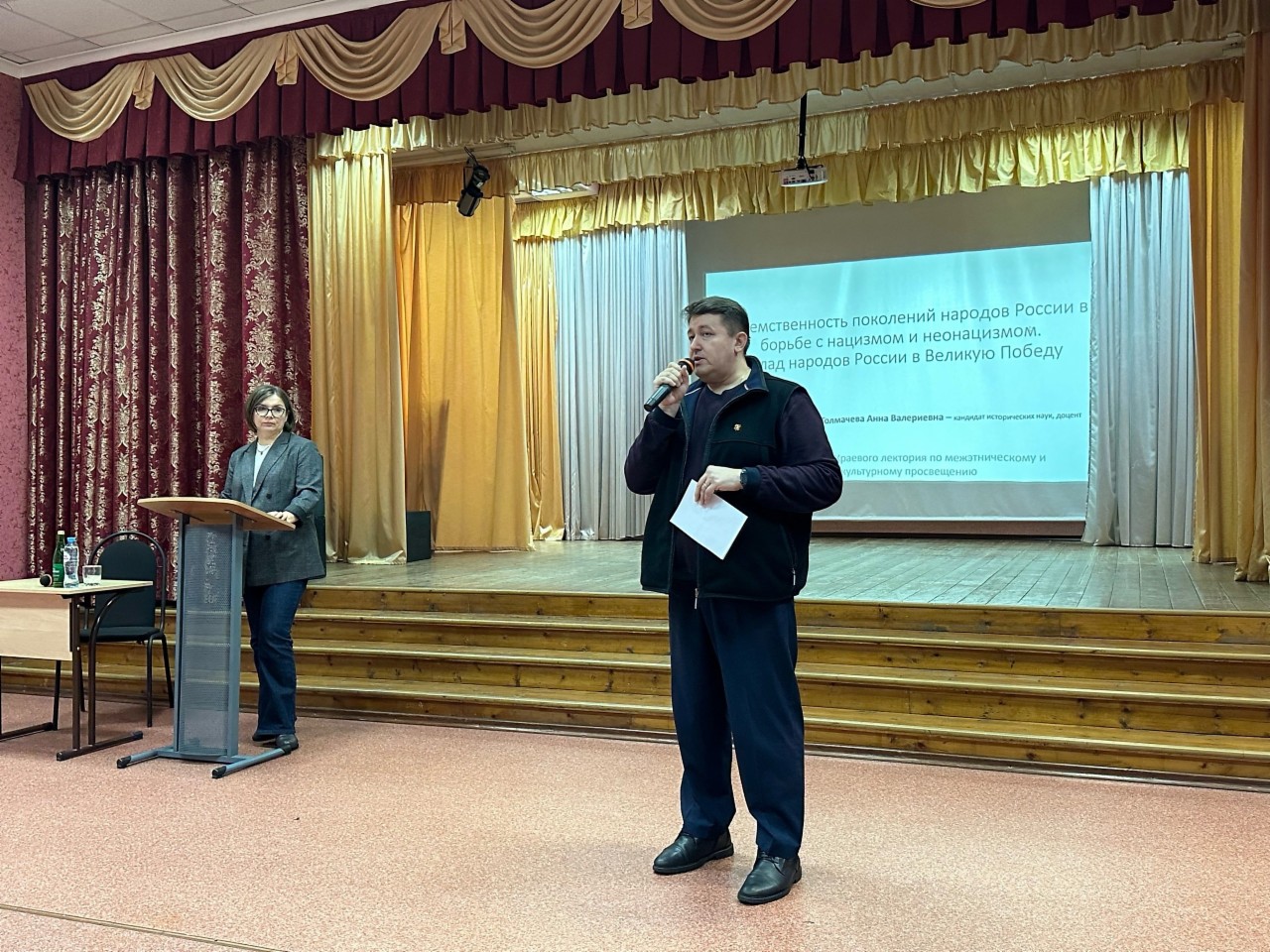 В актовом зале МБОУ Школа №95 г. Железногорск прошла лекция по теме: «Преемственность поколений народов России в борьбе с нацизмом и неонацизмом. Вклад народов России в Великую Победу».Лекция проходила в рамках краевого лектория, организуемого администрацией Губернатора Красноярского края.