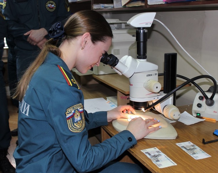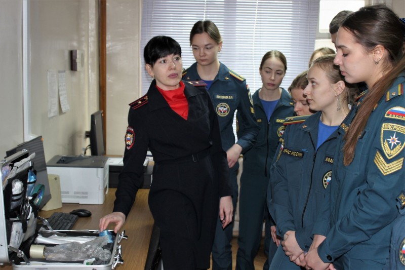 После знакомства с историей Межмуниципального управления, будущие выпускники вуза отправились на экскурсию в экспертно-криминалистическое подразделение. Майор полиции Евгения Кравцова подробно рассказала о специфике работы криминалистов МВД, специальном оборудовании, приборах и технологиях используемых современными экспертами. Узнали будущие криминалисты и о том, какие виды экспертиз выполняются сотрудниками и как можно получить соответствующий допуск.