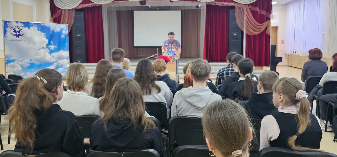 В Школе №97 состоялся «Урок мужества» для старшеклассников, который провёл ветеран боевых действий в Чеченской республике, ветеран органов внутренних дел Косарев Павел Алексеевич.