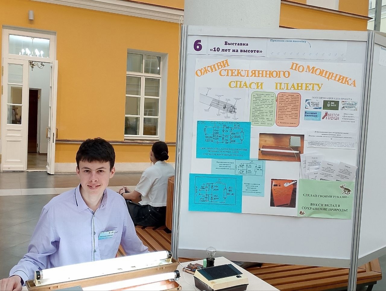 Ученик 9б класса Гимназии №91 Рыжов Максим стал призёром конкурса, представив свой проект «От отходов к ресурсам: вторая жизнь люминесцентной лампы» по направлению «Технические и инженерные науки».