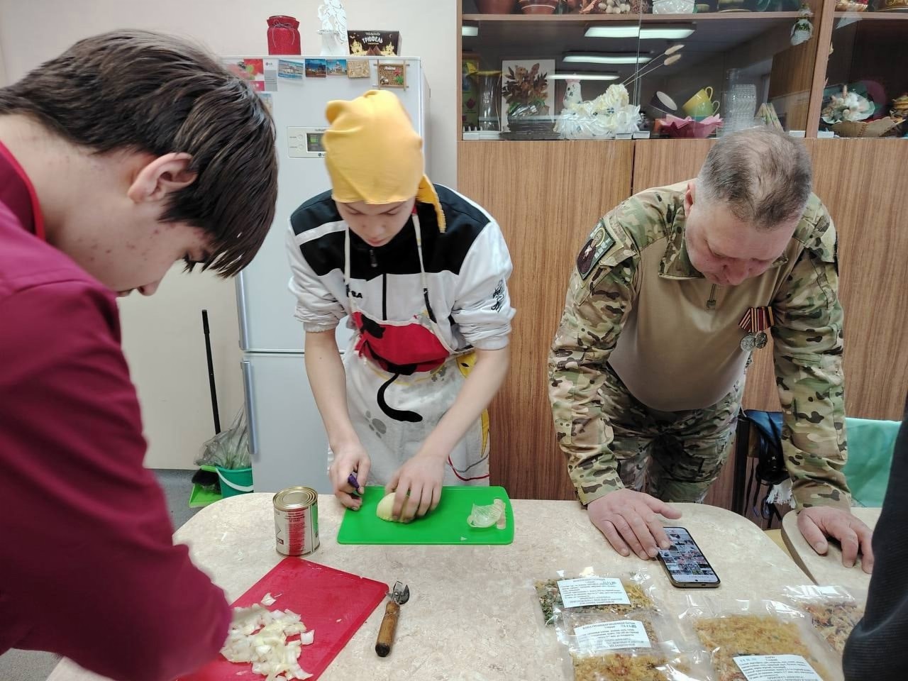 В завершение встречи прошёл мастер-класс под руководством учителей и ветеранов: ученики самостоятельно приготовили гречневую кашу — именно такую часто готовят солдатам на фронте.
