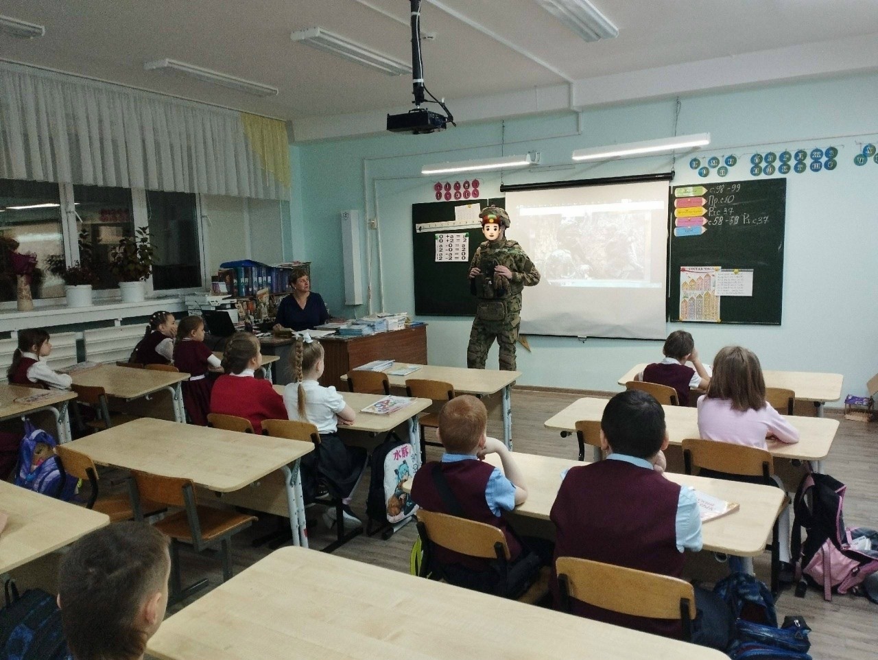 Первоклассникам было очень интересно, и они задавали вопросы про фронтовые будни, интересовались, насколько тяжёлое вооружение, бронежилет и каска. И на все вопросы дети получили подробные ответы.