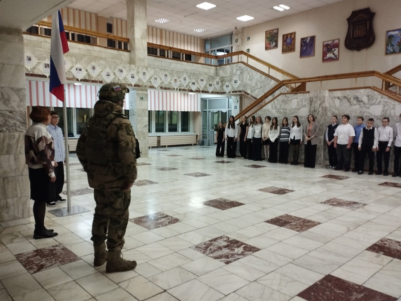 А после линейки, на «Разговорах о важном», наш защитник рассказал ребятам первого класса, как доблестно и самоотверженно сражаются наши воины с врагами на фронтах Специальной военной операции.