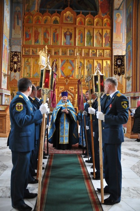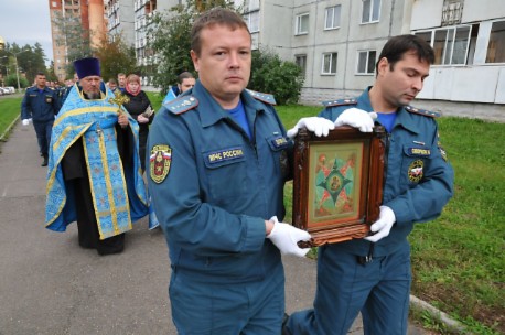 Сегодня впервые на территории ЗАТО прошел Крестный ход в честь иконы Божией Матери «Неопалимая Купина», в котором приняли участие служители собора Михаила-Архангела, курсанты академии МЧС и сотрудники ФПС-2.