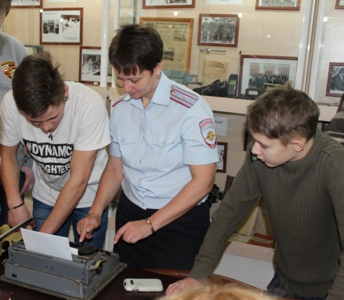 Побывали студенты и в музейной комнате. Посетителей заинтересовали медали и награды ветеранов и пенсионеров МВД. Николай Селезнев показал оборудование, с помощью которого работала милиция в советские годы. Гости смогли сделать памятные фотографии, примерив форму сотрудника МВД.
