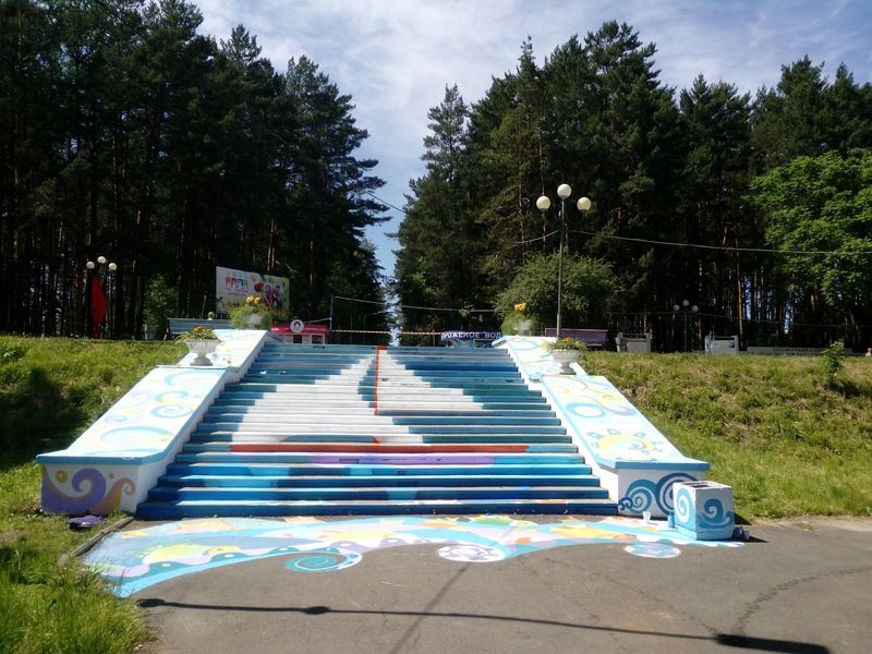 Стрит-арт "Морская лестница". Такое название получила лестница в парке, которую вчера разрисовали учащиеся ДХШ в возрасте от 11 до 16 лет с помощью своих преподавателей.