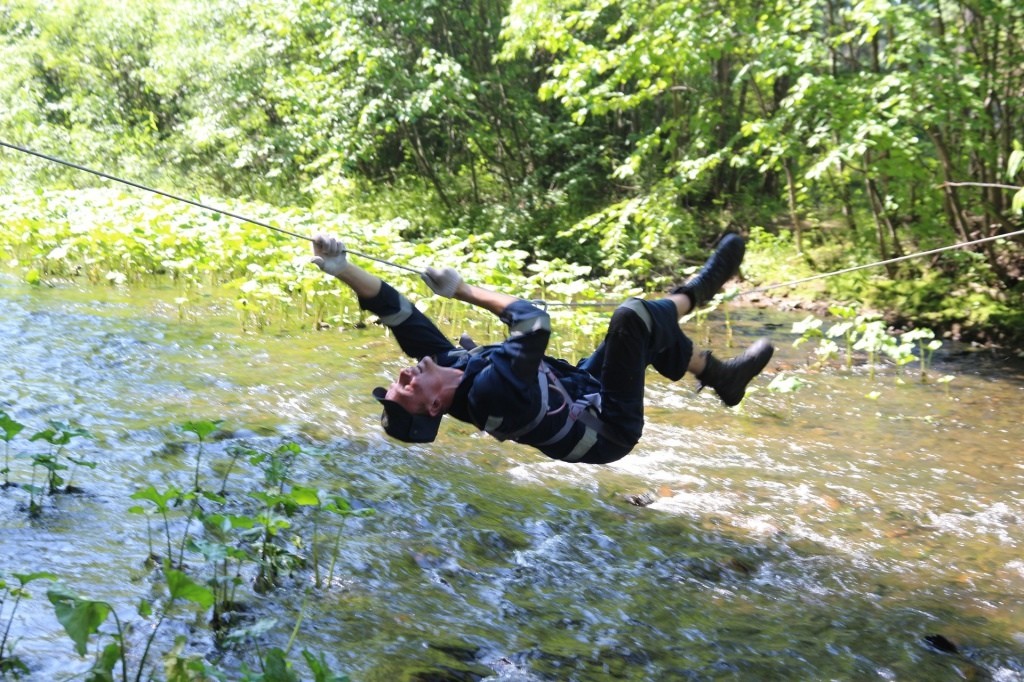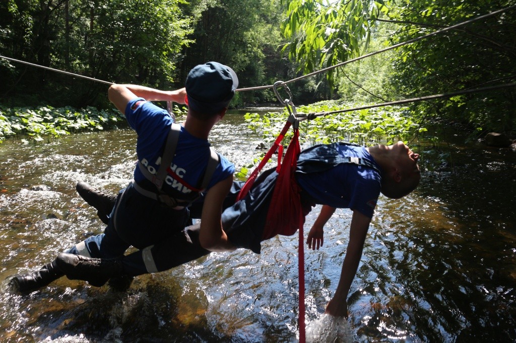 Помимо этого курсанты отрабатывают навыки оказания первой помощи, а именно накладывание повязок при различных видах травм, остановку кровотечения, а также способы транспортировки пострадавших в лесу и при форсировании реки не только с использованием специальных приспособлений, но и при помощи подручных средств.