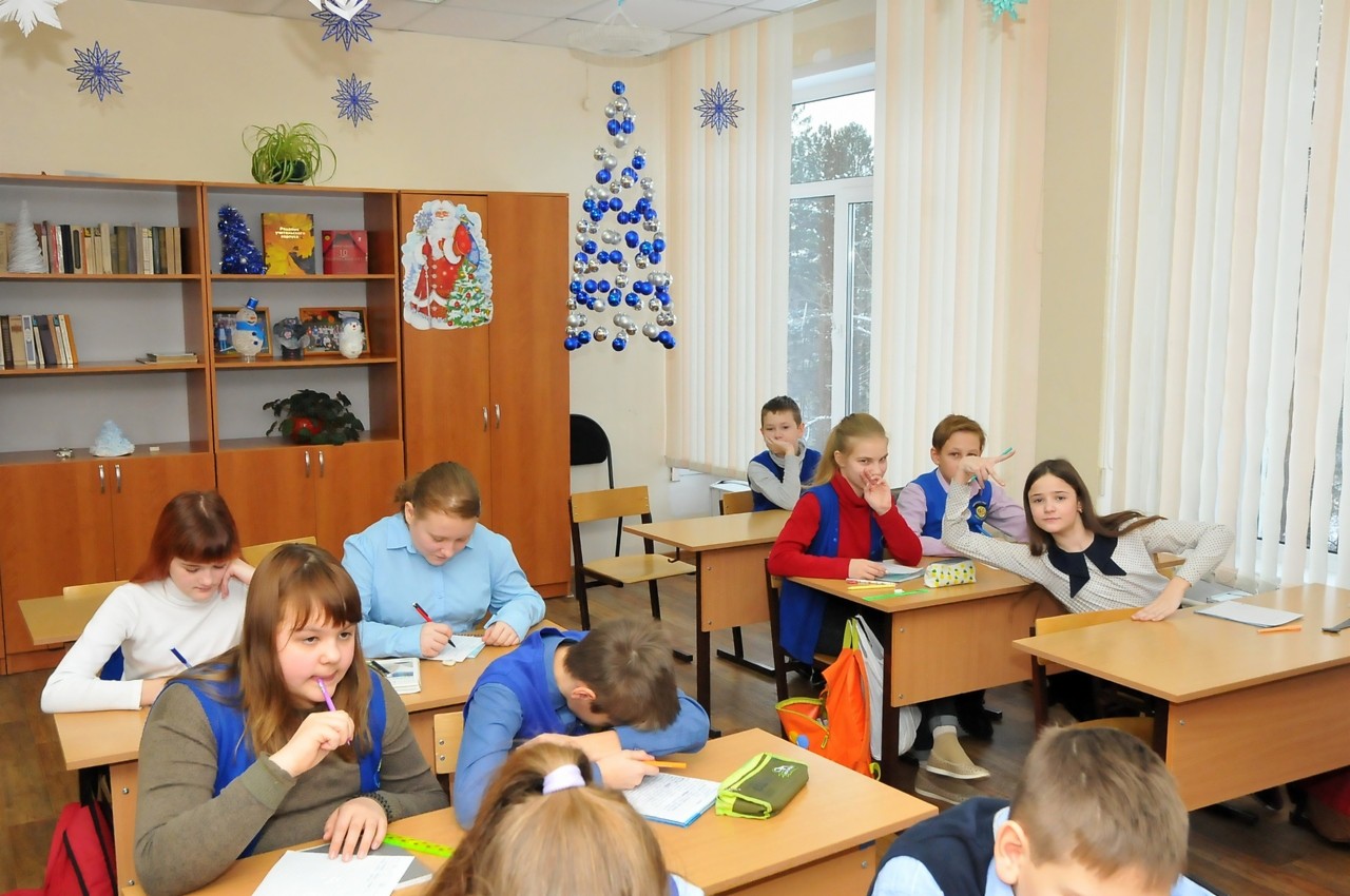 В блоке начальных классов журналистов "ГиГ" встретили песнями и театрализованными представлениями. Гостей познакомили с тремя поросятами, продемонстрировали выставку елок и пригласили посетить зимнюю избушку.