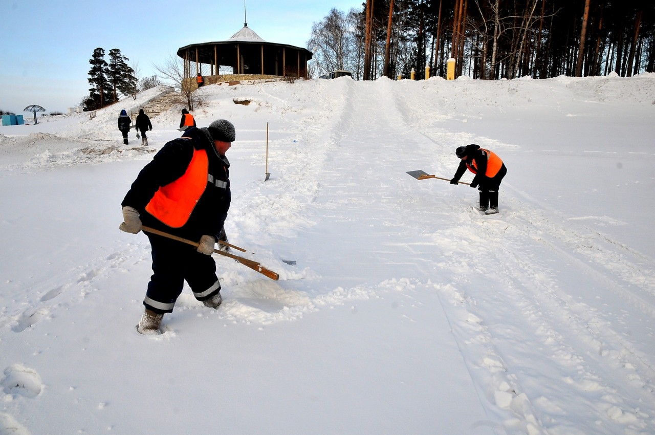 Сегодня работники МП «Комбинат благоустройства» начали формировать горку со снежными бортами в районе детского пляжа на городском озере.