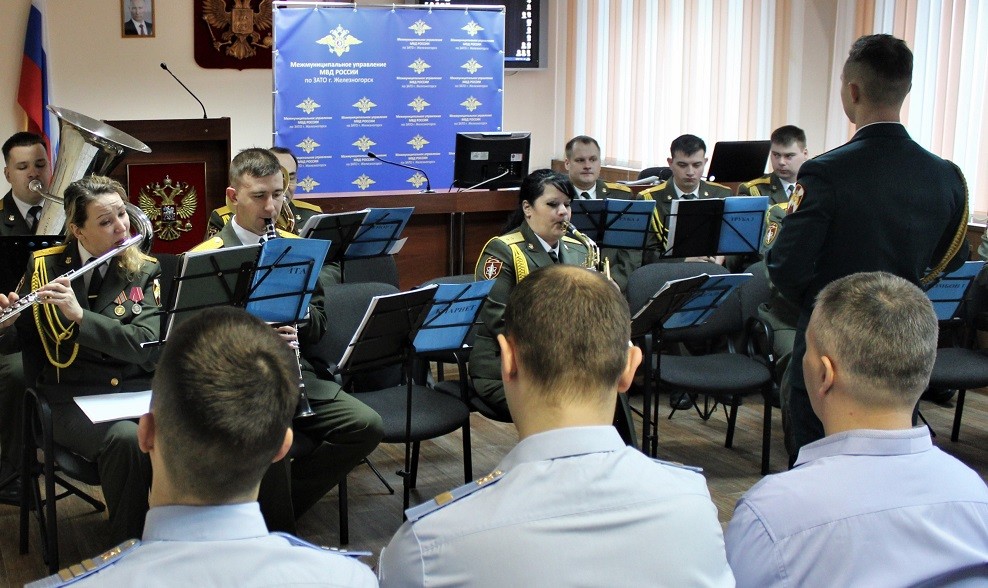Оркестр воинской части выступил перед руководством и личным составом МУ МВД России по Железногорску.