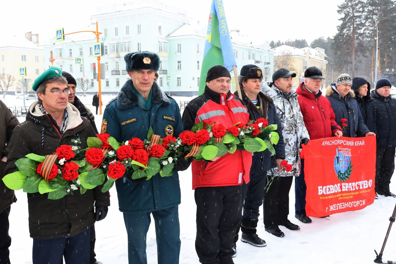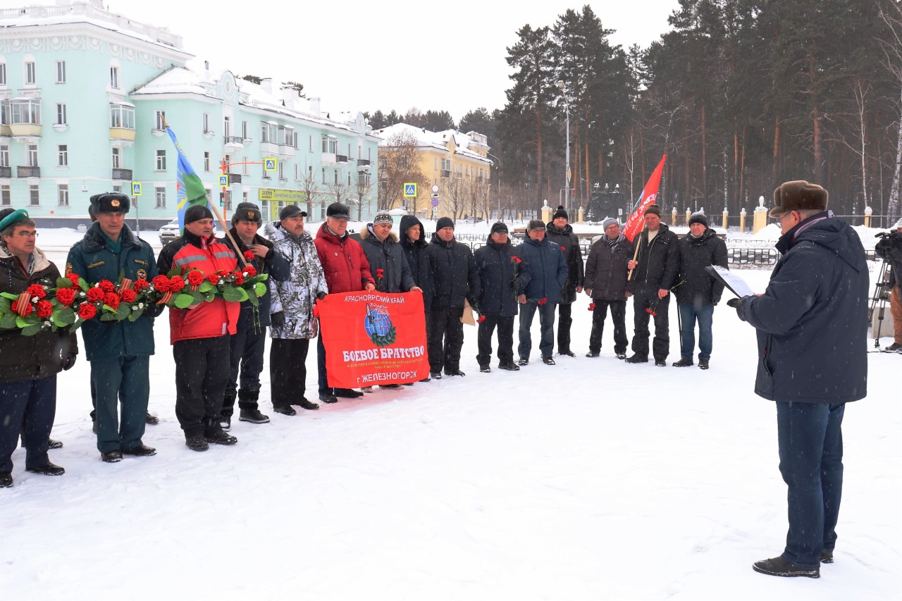 На железногорской Аллее славы собрались ветераны боевых действий в Афганистане и Чечне. Участники акции почтили память погибших минутой молчания и возложили цветы к монументу. За 10 лет в боевых действиях приняли участие свыше 650 тысяч военнослужащих и еще около 200 тысяч вольнонаемных граждан СССР. Эта война унесла 15 тысяч жизней.