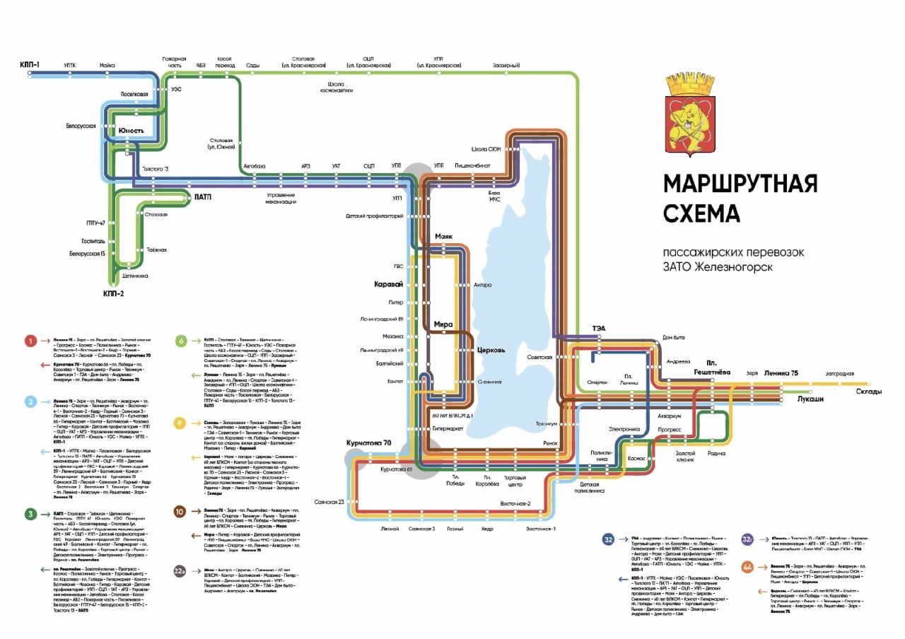 Директор МП ПАТП Семен Ташев опубликовал на своих страницах в соцсетях обновленную схему маршрутных перевозок Железногорска.