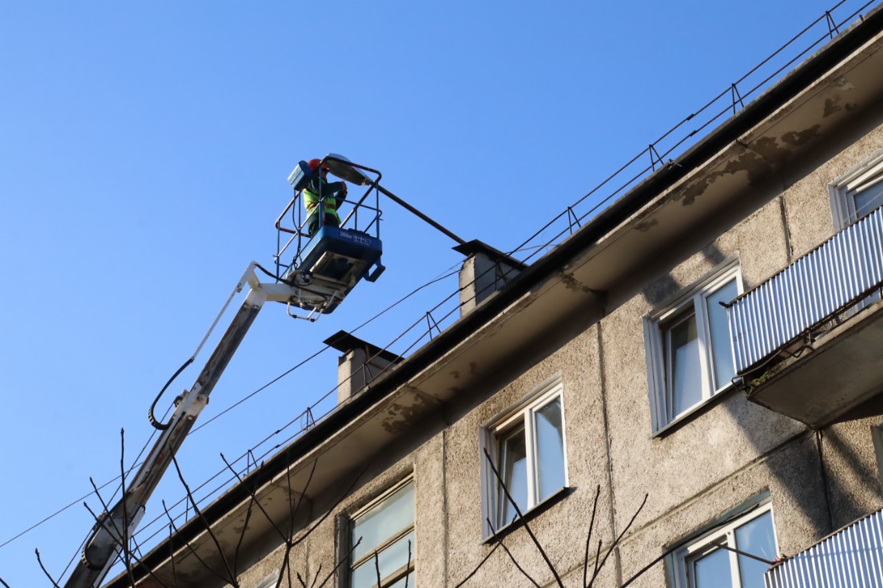 По словам Алексея Харабета, директора МП «Горэлектросеть», замена светильников на Саянской, 1 плановая. Вместо устаревших ртутных устанавливают новые - светодиодные. Предполагается что замена ламп, которые освещают дворы многоквартирных домов, будет проводиться в массовом порядке.