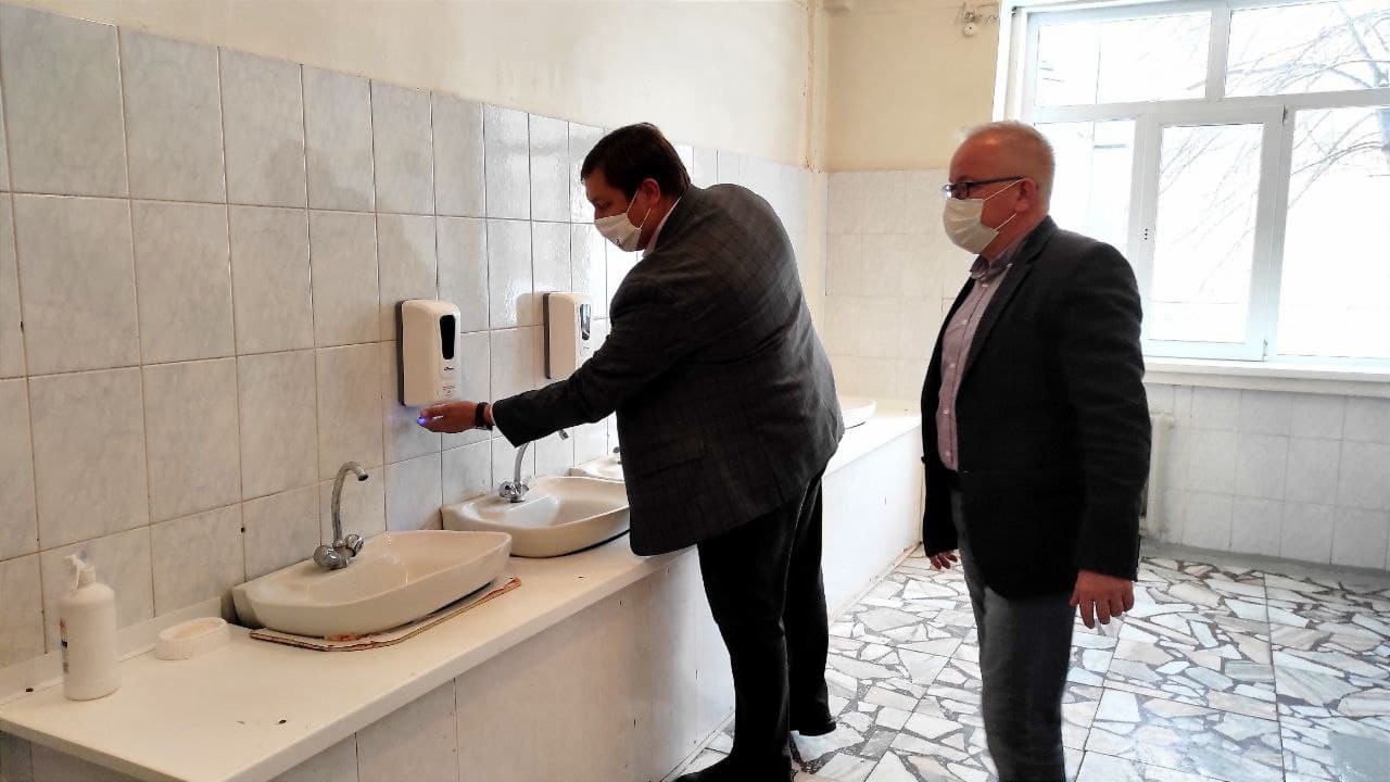 В сотой школе появились бесконтактные дозаторы мыла - это подарок учреждению от Семена Ташева. После истории с карантином, такой презент руководство школы приняло с радостью.