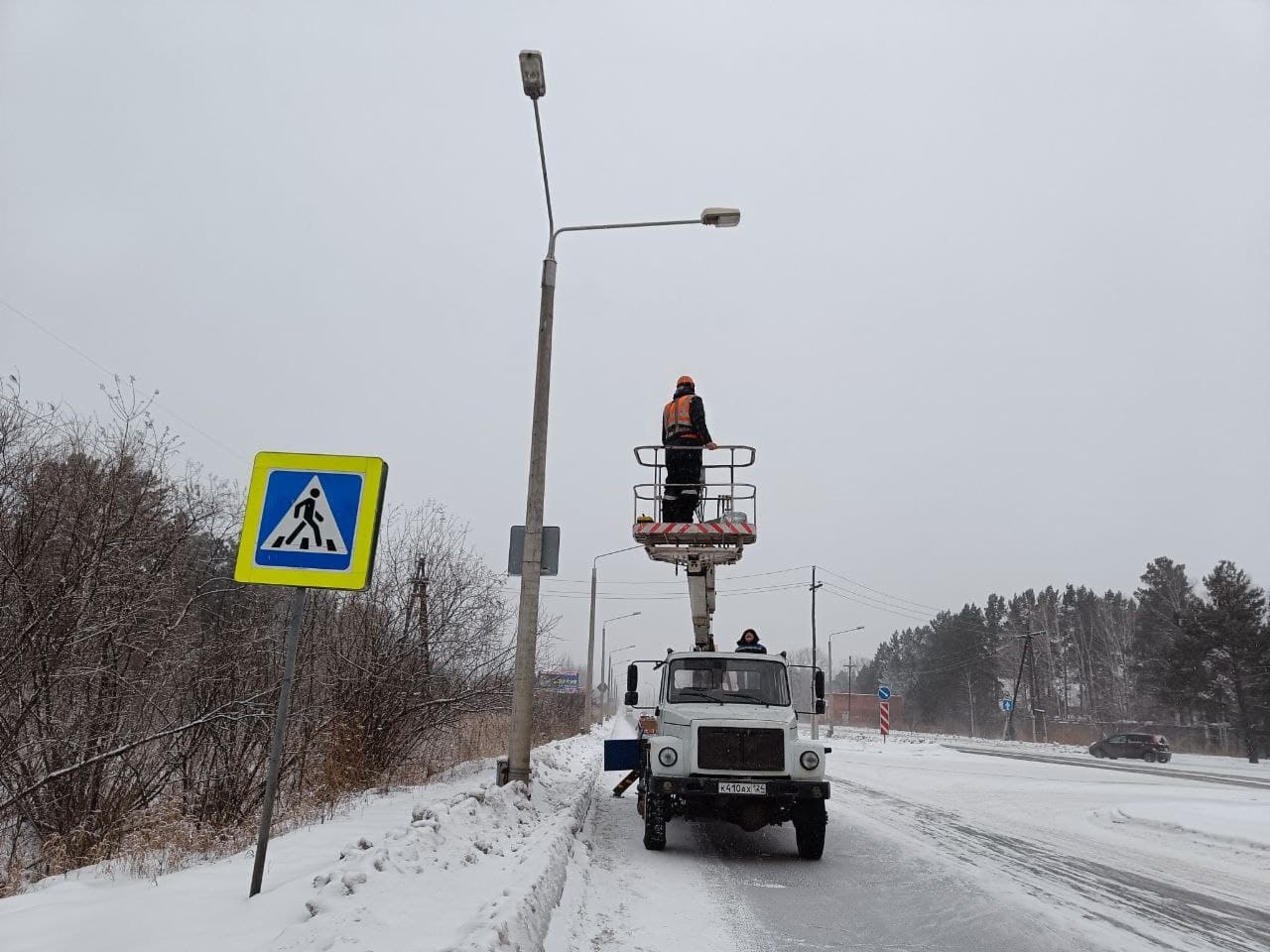 Сотрудники Горэлектросети установили новые светильники для лучшего освещения дороги на Ленинградском, 111 и Курчатова, 51. Белые галогеновые лампы повысит видимость для водителей и пешеходов. В планах ГЭС до нового года заменить фонари на перекрестке улиц Ленина и Маяковского.