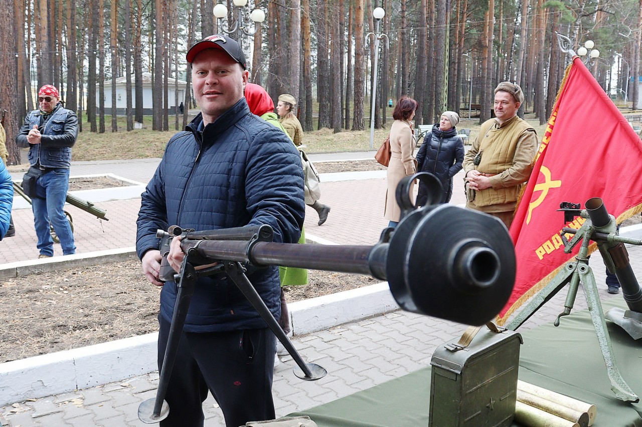 Сегодня днем в Железногорском парке прошла военно-историческая реконструкция и выставка образцов вооружения времён Великой Отечественной войны.