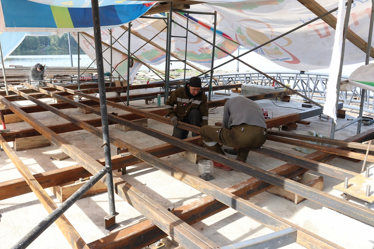 Прогулялись и до навесной смотровой площадки через речку Кантат. На ней уже уложили деревянный настил, но работы еще продолжаются, поэтому горожан убедительно просят пока здесь не ходить. Кстати, территория на противоположном берегу находится за границей проектирования «Нейтрино-парка». Но, несмотря на это, обсуждаются варианты благоустройства площадки. По словам и. о. главы ЗАТО Алексея Сергейкина совершенно точно поверхность выровняют и по возможности установят МАФы.