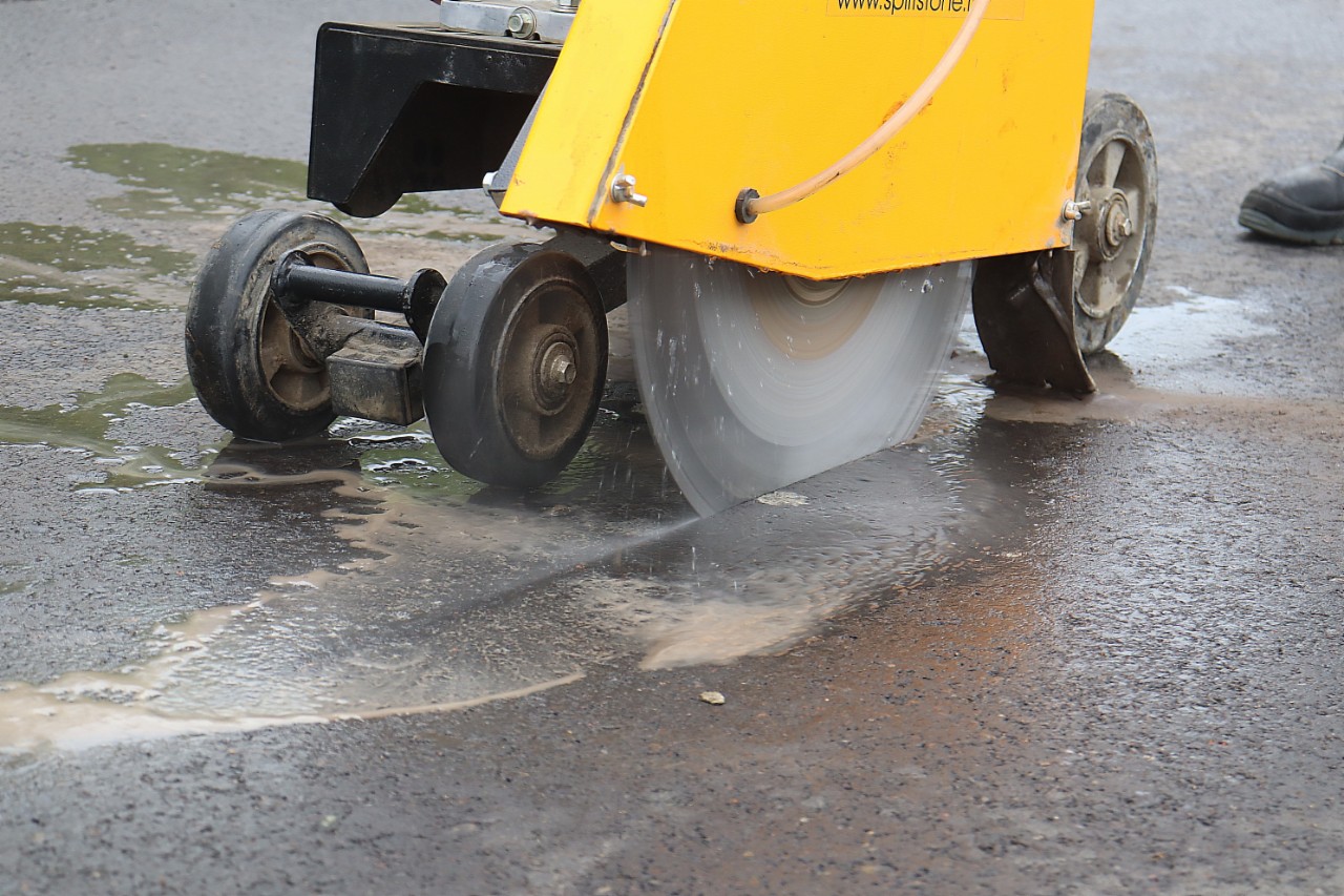 На свежеотремонтированном участке дороги от улицы Южная к десятой подстанции специалисты КРУДОР взяли пробы асфальта для лабораторного исследования.
