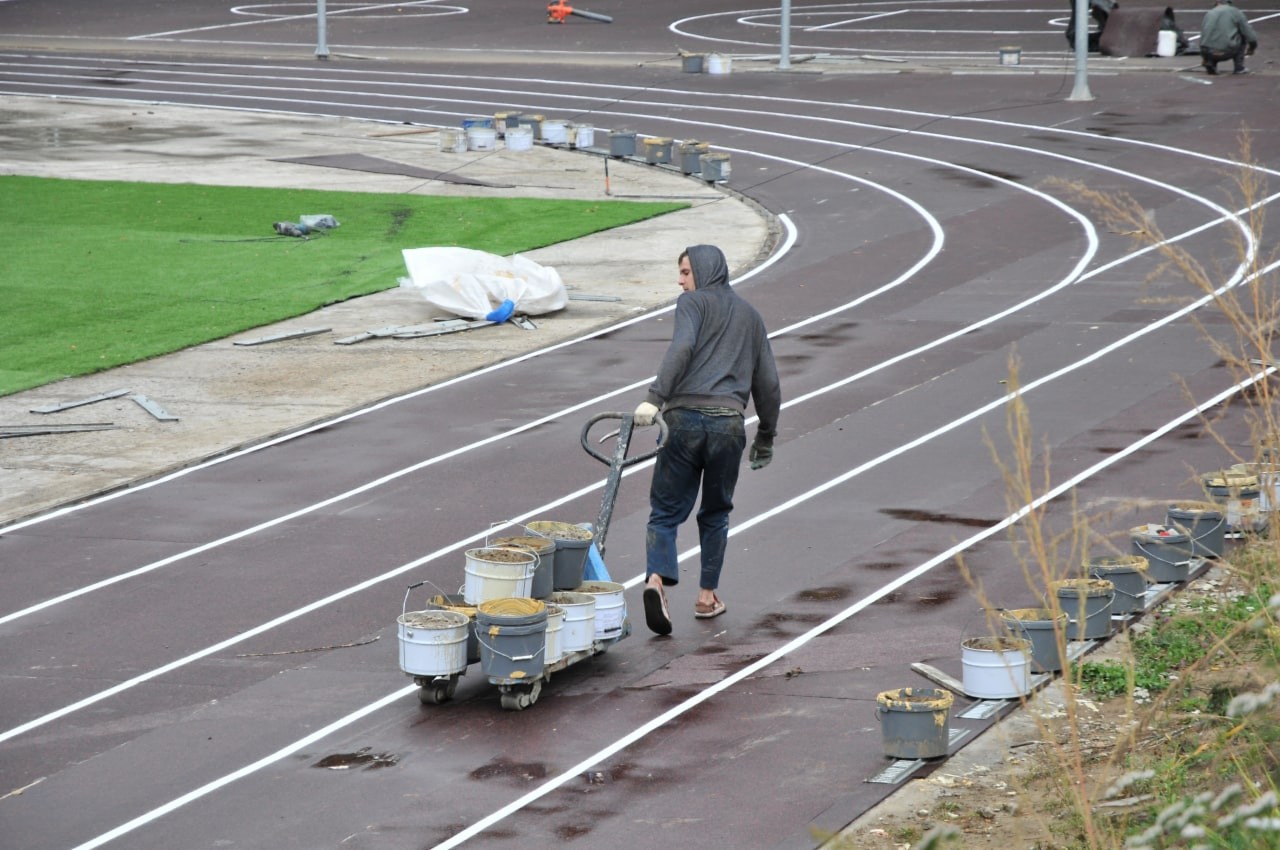 Напомним, в этом году ремонтные работы шли здесь по гарантии. Не надо быть инженером или техническим специалистом, чтобы понимать, что подрядчик, выполняющий работы на ФОКОТе, мягко скажем, не утруждает себя таким понятием как «качество». Беговые дорожки склеены так, что уже пошли волной, волейбольная площадка вся в буграх, яма для прыжков в длину в принципе без планки для отталкивания, сектор для прыжков в высоту даже установить пока нельзя — нет условий... Технический заказчик почему-то до сих пор не указал подрядчику на эти недочеты — по крайней мере, за очередной сезон работ ошибки не исправлены...