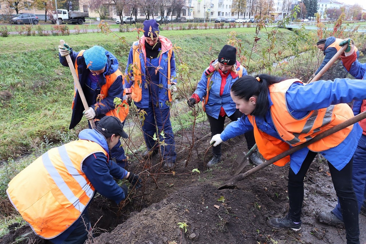Как сообщил начальник КБУ Николай Пасечкин, на этом отрезке высажено 650 кленов Гиннала. Этот кустарник не только красив, особенно осенью, но и пластичен в обрезке — из него хорошо формируется плотная живая изгородь.
