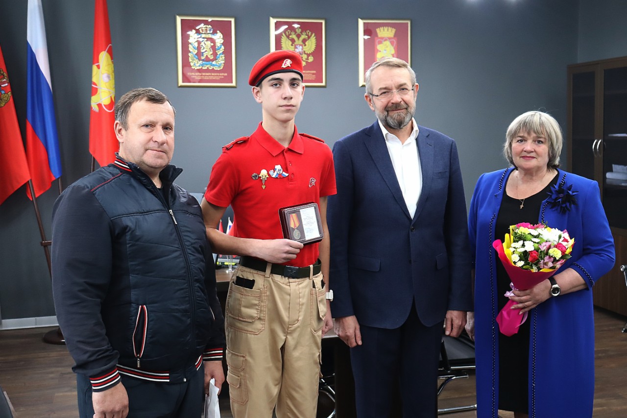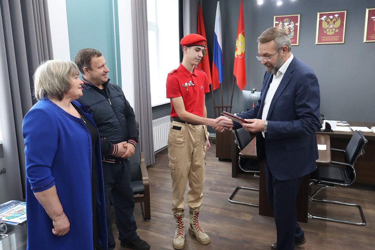 Сегодня глава ЗАТО Железногорск Игорь Куксин вручил юнармейцу Алексею Фролину бронзовый знак «Юнармейская доблесть» III степени.