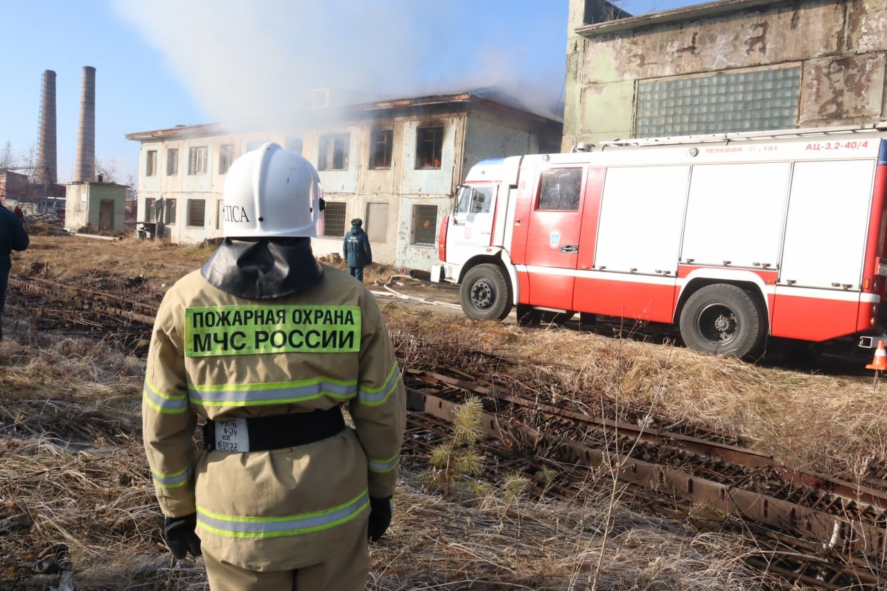 Завод ЖБИ закрыт с 2013 года. Сейчас там начинаются демонтажные работы, поэтому для тренировки пожарным выделили одно из заброшенных зданий.