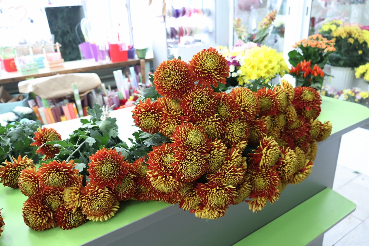 Тысяча штук уже заняла свои места в витринах. Начальник цеха зеленого хозяйства Лариса Шкарбун говорит, что 10 сортов хризантемы стабильно выращивают уже десять лет.