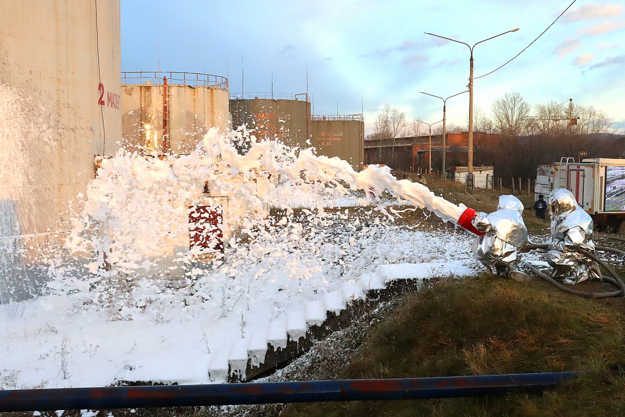 Вечером сотрудники МЧС провели показательные учения. По легенде на котельной № 1 произошел взрыв и серьезный пожар.
