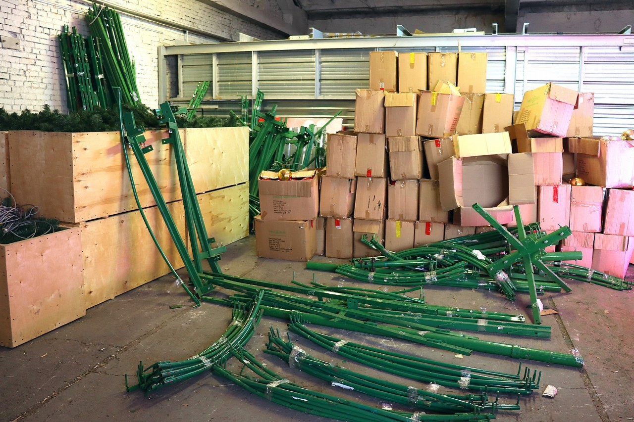 Ели доставили на теплый склад МП «Горэлектросеть» 24 ноября, и специалисты предприятия уже приступили к их бережной сборке. Кроме новогодних деревьев, привезли новые ограждения, комплекты гирлянд и шаров.