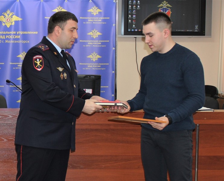 Руководством МУ МВД России по ЗАТО г.Железногорск было принято решение поблагодарить внимательного и неравнодушного жителя города, который нашел и привез в полицию ребенка. Начальник МУ МВД России по ЗАТО г.Железногорск в присутствии руководителей и личного состава вручил Антону Станиславовичу благодарственное письмо и памятный подарок.