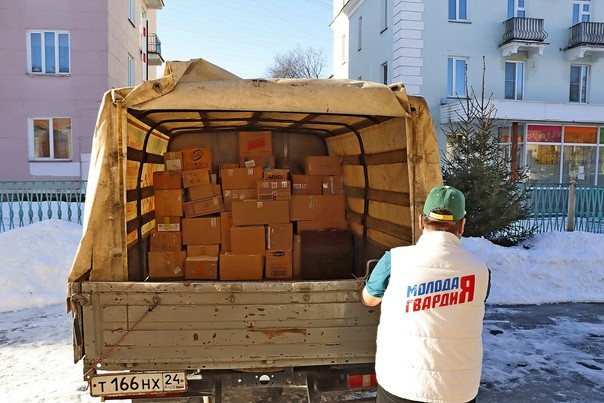 Ребята из железногорского отделения Молодой гвардии активно включились в помощь при сортировке и упаковке посылок.
